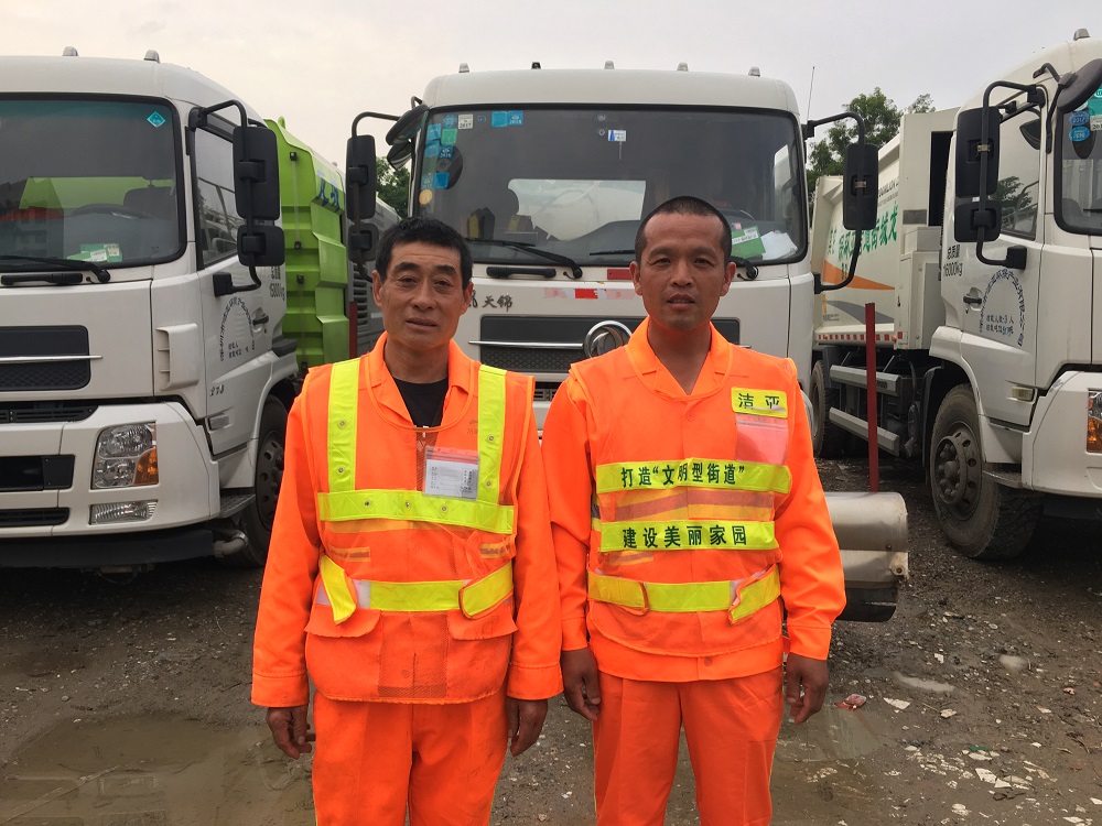 潔亞最美環(huán)衛(wèi)工周樹波和李產(chǎn)糧(從左至右)