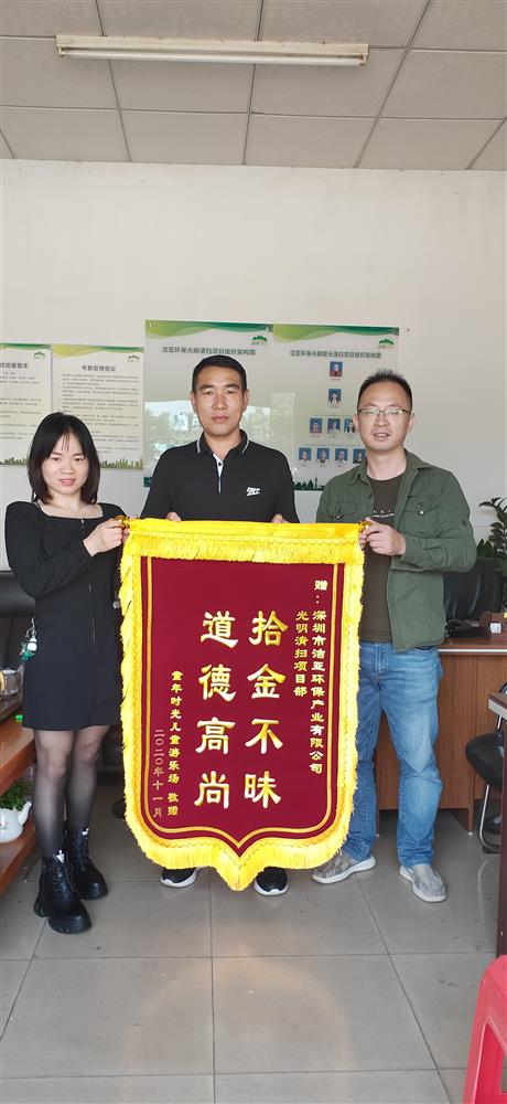 “謝謝譚大姐!這筆錢要丟了我真是該愁死了!”拾金不昧是中華民族的傳統(tǒng)美德,10月29日,光明街道的一位清潔工以拾金不昧的寶貴品質(zhì)造就這樣的暖心一幕。